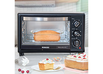 The Borosil Prima Pro 30L Oven Toaster Griller comes with convection heating to ensure efficient and even cooking, and a motorized rotisserie. It can be used for baking, grilling, shashliks etc. With easy to figure dial controls and a bright light so you can see the insides properly while cooking, once you switch to the Prima OTG, we guarantee you will never use anything else.