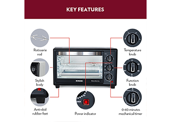 The adjustable temperature controls, long duration timer and 6 stage heating options ensure that you can use the OTG to cook whatever you like, whenever you like, and just the way you like it!