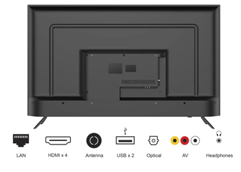 - Inputs: 4x HDMI (one with eARC), 1x AV IN, 2x USB Audio Outputs: Optical, Headphone