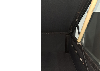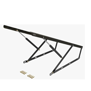 Wooden and board frame structure featuring a shock mechanism for enhanced support, allowing for convenient storage within the base.